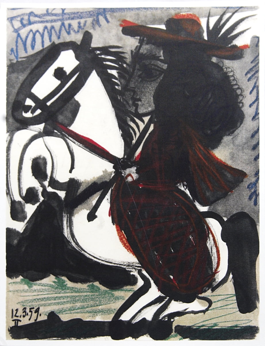 Pablo Picasso Cavalier 14 5 X 10 5 Lithograph 1959 Cubism Black White Brown Red Horse Rider Hat Walmart Com